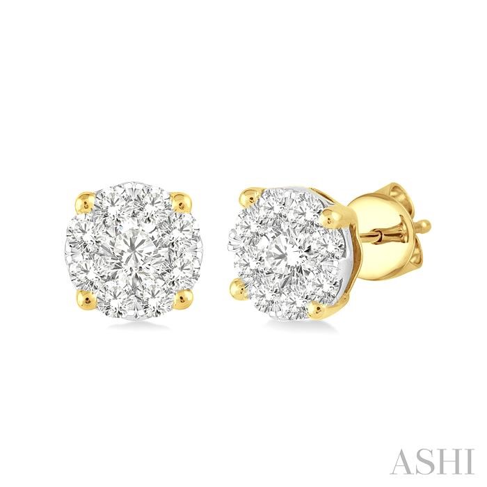 Captivate her with the dazzling and stunning look of these mesmerizing lovebright diamond earrings. Beautifully crafted in luminous 14 karat yellow and white gold, these gorgeous diamond earrings feature 18 round cut diamonds, perfectly invisible set. These treats close with a secure clasp. Total diamond weight is 1/3 Ctw.